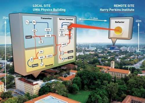科学家们一直渴望增加激光信号传输的距离,但目前这项技术受到自然环境,比如风等因素的限制。在本研究中,西澳大利亚大学科研团队建造的这款新激光器,实现了在2.4公里距离稳定传输信号,稳定性是此前系统的100倍。而且,这一激光器比原子钟还稳定。