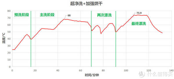 ? 这里选择超净洗+加强烘干来看一下实际腔内的水温变化情况。