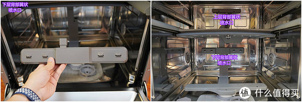 ?这台洗碗机内腔结构是我以前从来没见到过的结构。为什么这么说呢?