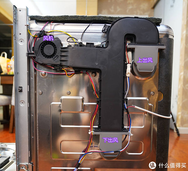 风道内通过PTC加热器加热空气,加热器功率165W。可持续输出热风来加速烘干餐具。